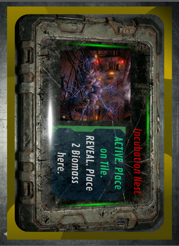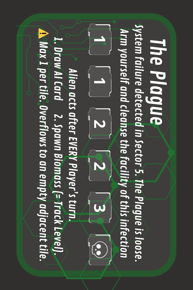 Gameplay: A frantic game of Containment and Crisis Management. The alien biomass grows automatically every turn. If the ship is overrun, everyone loses.